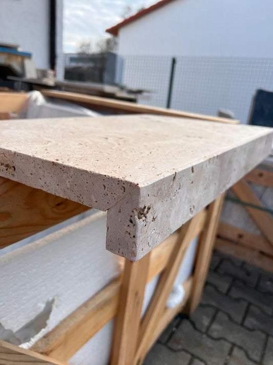 Travertin Blockstufen Classic 15x35x100 cm – gesägt, getrommelt & offenporig – Kanten gefast