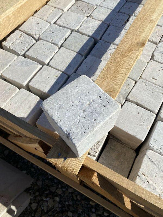 Pflastersteine aus Travertin | 10x10x7,5cm | Silver